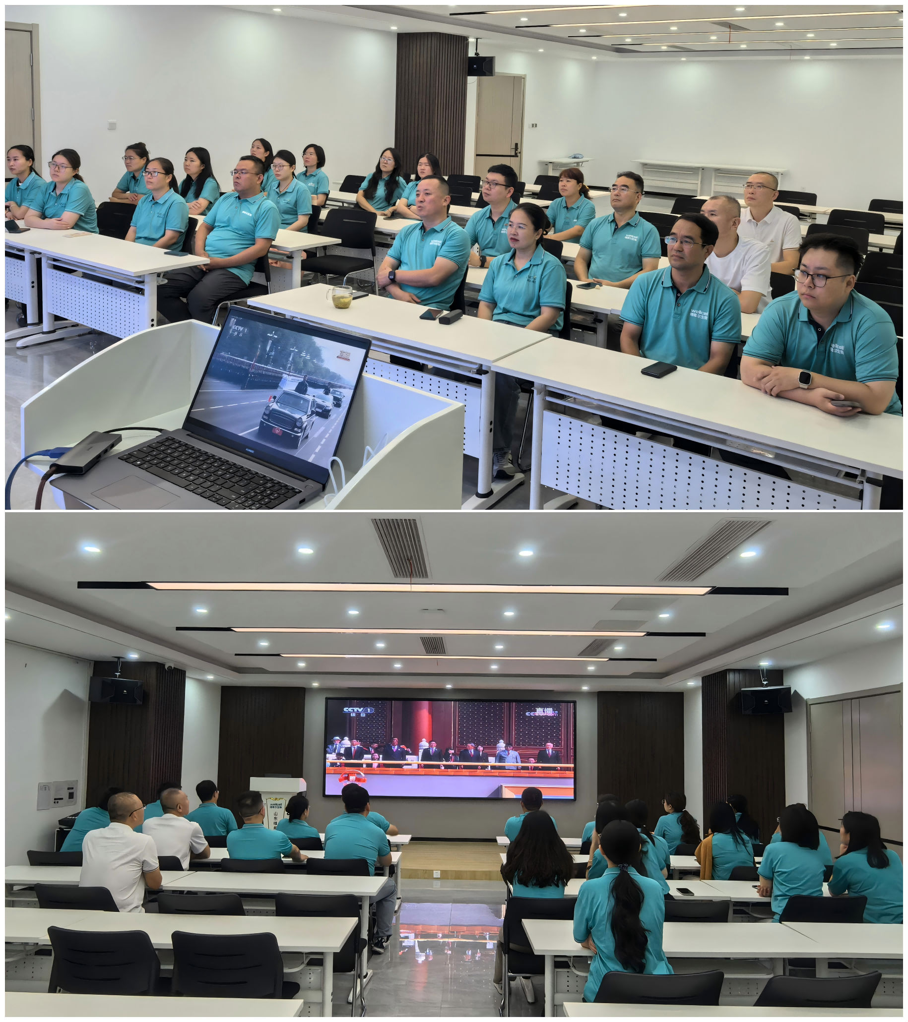 为纪念中国人民抗日战争暨世界反法西斯战争胜利80周年,弘扬伟大爱国主义精神,增强企业凝聚力与员工民族自豪感,9月3日上午,维希尔集团组织全体员工集体观看在北京隆重举行的“纪念中国人民抗日战争暨世界反法西斯战争胜利80周年阅兵式”(又称“93大阅兵”)现场直播,共同见证这场彰显国家辉煌成就和强军风采的历史性时刻。