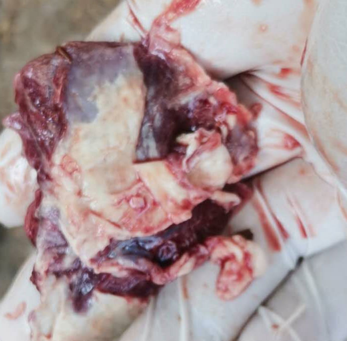 第三阶段:随着时间的推移,病情进一步恶化,就会发展到第三个时间段,肉鸭出现肺部感染,发生肺炎:这时候主要剖解症状是肺脏充血坏死,个别也会出现气囊炎、包肺情况。治疗以清肺热+控制肺部感染为主。